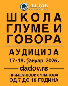DAJE SE NA ZNANJE! Audicija za nove polaznike Škole glume i govora Dadova. Omladinsko pozorište DADOV kao i svake godine u januaru otvara vrata za