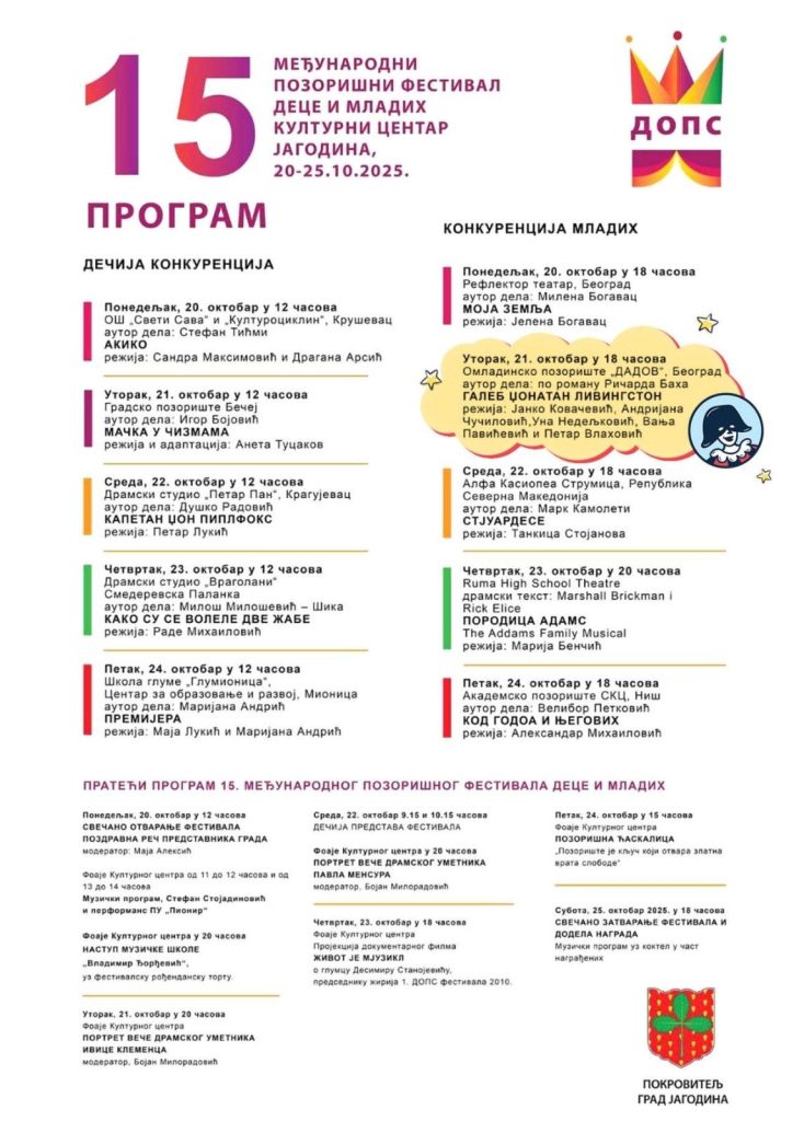 Omladinsko pozorište DADOV je sa svojom predstavom GALEB DŽONATAN LIVINGSTON ušlo u zvanični program 15. Međunarodnog pozorišnog festivala za decu i mlade DOPS u Jagodini.
